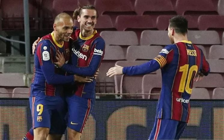 Barcelona 3-1-4-2: Marc-Andre ter Stegen; Oscar Mingueza (Junior Firpo 78′), Clement Lenglet, Gerard Pique; Sergio Busquets (Ilaix Kourouma 78′); Sergino Dest (Antoine Griezmann 63′), Frenkie de Jong, Pedri (Martin Braithwaite 89′), Jordi Alba; Ousmane Dembele (Francisco Trincao 89′), Lionel Messi.