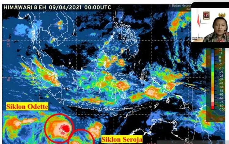 Guswanto mengatakan keberadaan Siklon Tropis Odette dan Siklon Tropis Seroja di Samudra Hindia dalam posisi yang sejajar dan bersamaan.
