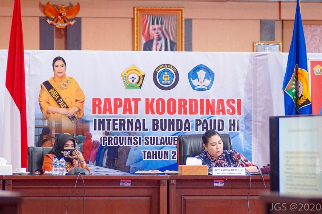 Bunda Pendidikan Anak Usia Dini (PAUD) Provinsi Sulawesi Tenggara (Sultra) Agista Ariany Ali Mazi memimpin Rapat Koordinasi Internal Bunda PAUD Sultra di Rumah Jabatan Gubernur, Kamis (8 Oktober 2020). Ia meminta agar Pokja Bunda PAUD Sultra senantiasa melakukan koordiansi dengan seluruh stakeholder yang ada.