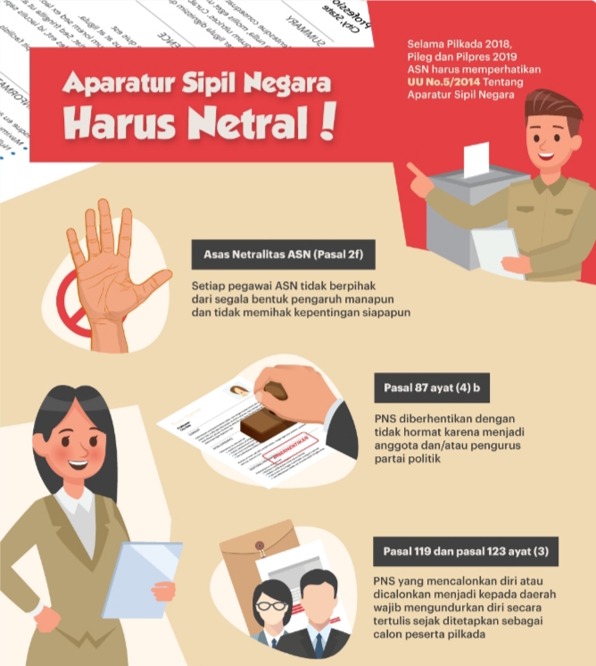 Pedoman larangan bagi para abdi negara untuk berpolitik praktis, kata Andi Kati, secara gambalang dijabarkan pada Undang-undang (UU) ASN nomor 5 tahun 2014 tentang netralitas ASN, PP 42 tahun 2004 tentang pembinaan jiwa korps dan kode etik PNS, PP 53 tahun 2010 tentang disiplin PNS. Kemudian dipertegas juga oleh Surat Edaran (SE) Kemenpan dan KASN tahun 2017 yang mewajibkan ASN menjaga netralitasnya. Lalu, di UU 10 tahun 2016 pada pasal 70 dan 71 mengatur terkait netralitas ASN serta pihak-pihak terkait.