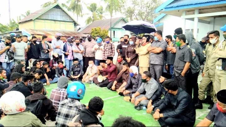 Pada kesempatan ini juga, Ketua DPRD Buteng Bobi Ertanto yang menemui massa aksi mengajak para demonstran duduk bersila di halaman kantor DPRD Buteng.