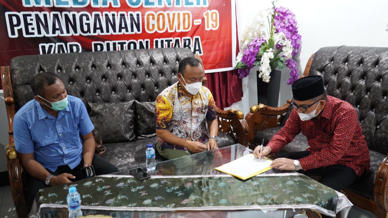 Penandatanganan Komitmen Bersama ini langsung disaksikan oleh Bupati Buton Utara, Abu Hasan. Dalam arahannya sesaat sebelum penandatanganan Komitmen Bersama, Abu Hasan berharap kedepannya pemasaran komoditas pertanian Buton Utara lebih meningkat lagi.