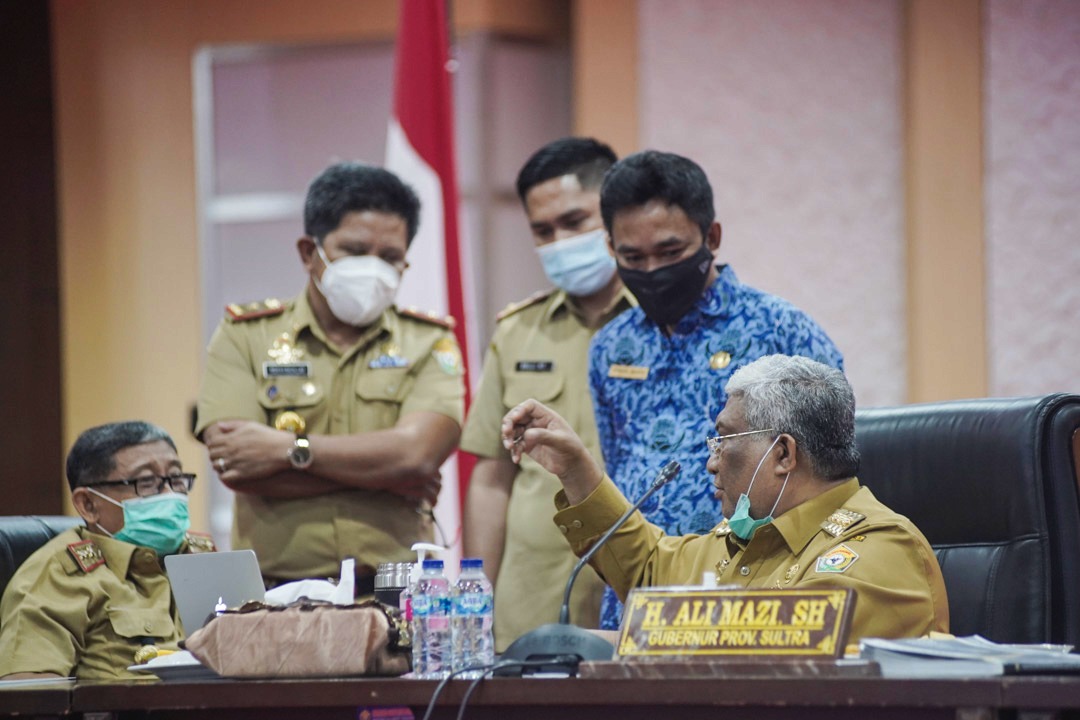 Gubernur Sulawesi Tenggara (Sultra) Ali Mazi langsung menggelar rapat terbatas (ratas) dengan sejumlah pejabat di lingkup pemerintah provinsi (pemprov) di Rumah Jabatan Gubernur, Senin,(18/1/2021)