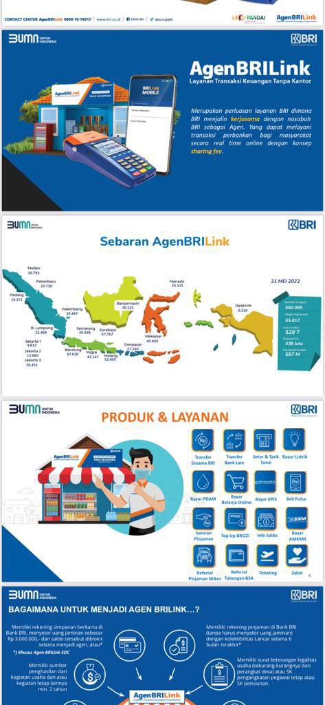 Agen BRILink kini tersebar mulai tugu Monumen Nasional (Monas) hingga desa-desa di seluruh Indonesia.