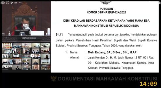 KENDARI – Mahkamah Konstitusi (MK) menolak permohonan pasangan nomor urut 03, Muhammad Endang – Wahyu Ade Pratama Imran terkait sengketa pemilihan kepala