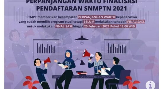 Jakarta – Lembaga Tes Masuk Perguruan Tinggi (LTMPT) memberikan perpanjangan waktu finalisasi pendaftaran Seleksi Nasional Masuk Perguruan Tinggi Negeri (SNMPTN) 2021 hingga